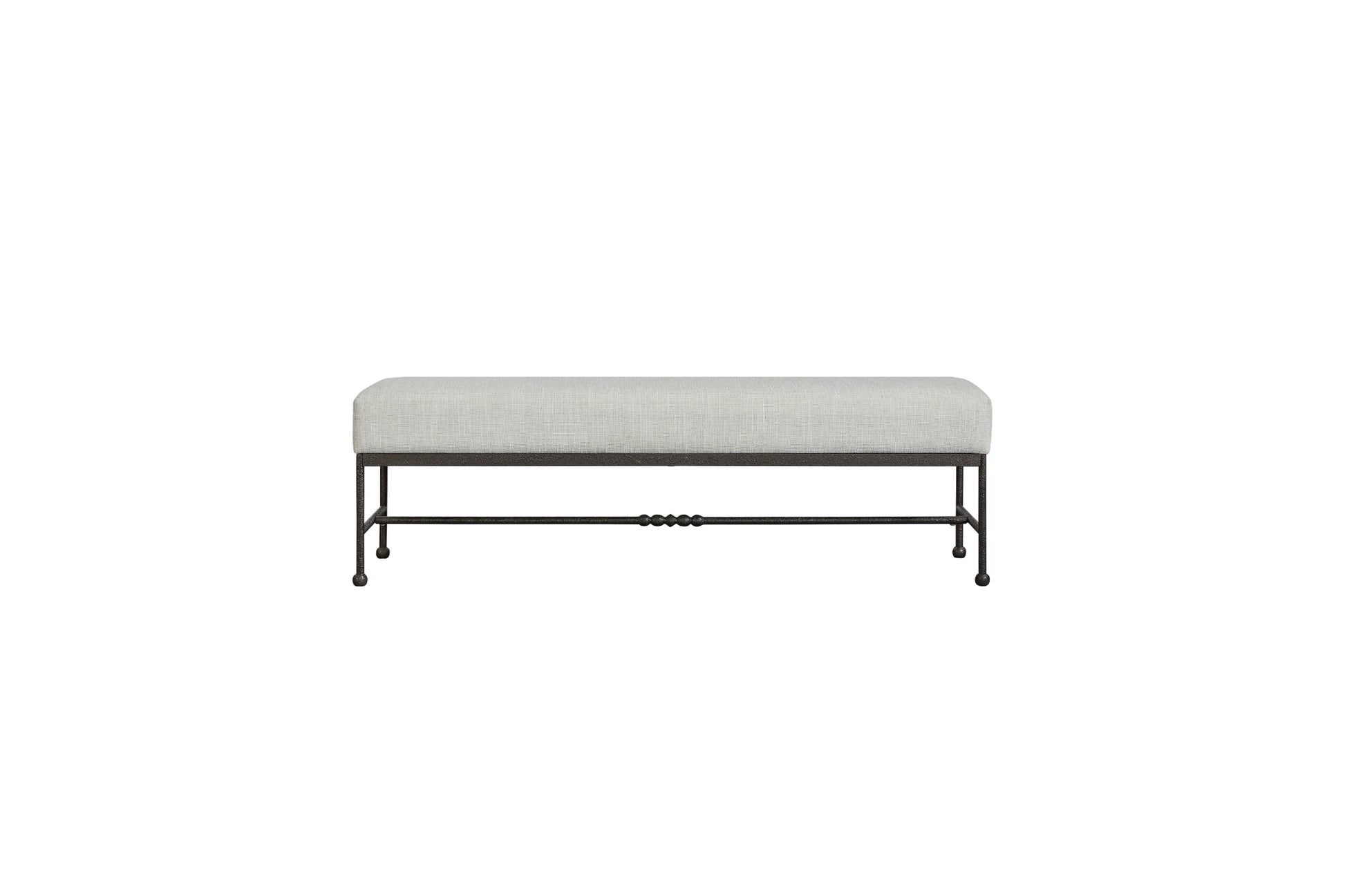 The Tarrington Bench brings comfort and versatility to the bedroom with its upholstered seat and clean, refined silhouette. Supported by sleek metal legs, it blends softness and structure for a balanced, modern look. The cushioned top provides an inviting place to sit, style, or set items at the foot of the bed. Simple yet elevated, this bench adds the perfect finishing touch to the Tarrington bedroom.