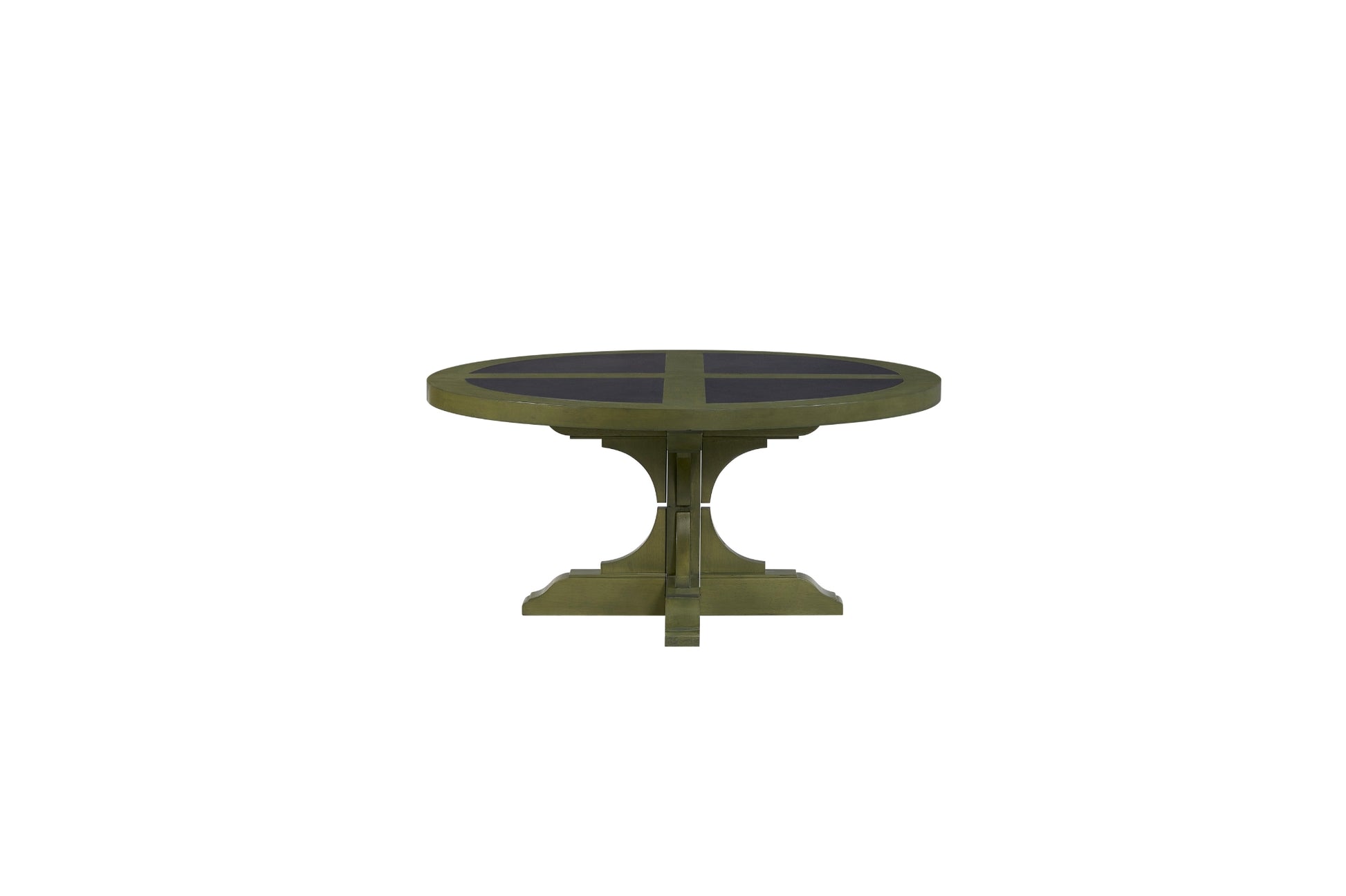 The Tarrington Pistachio Round Cocktail Table makes a bold yet sophisticated statement with its rich green finish and classic pedestal base. Crafted from American hickory, its smooth round top offers generous surface space for entertaining or everyday living. The Pistachio finish adds depth and character, creating a striking focal point that complements both neutral and warm wood tones. Designed to anchor your seating area, this table brings refined color and timeless appeal to any living space.