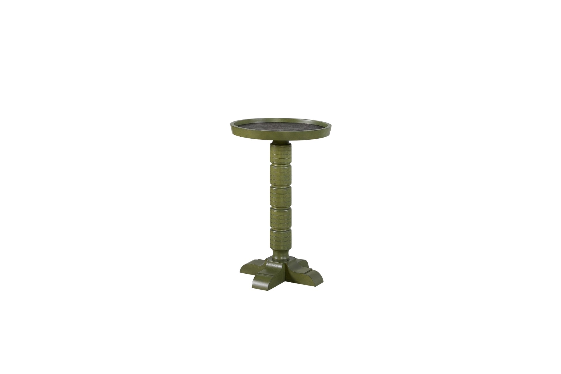 The Tarrington Pistachio Spot Table is a versatile accent piece designed to add function and personality wherever it’s placed. Finished in the collection’s deep Pistachio hue, this compact table brings a rich, designer-inspired touch to your living room or bedroom. Its sturdy hickory construction ensures lasting durability, while the clean silhouette allows it to layer seamlessly with surrounding furnishings. Perfect beside a sofa or chair, it delivers style in a small but impactful footprint.