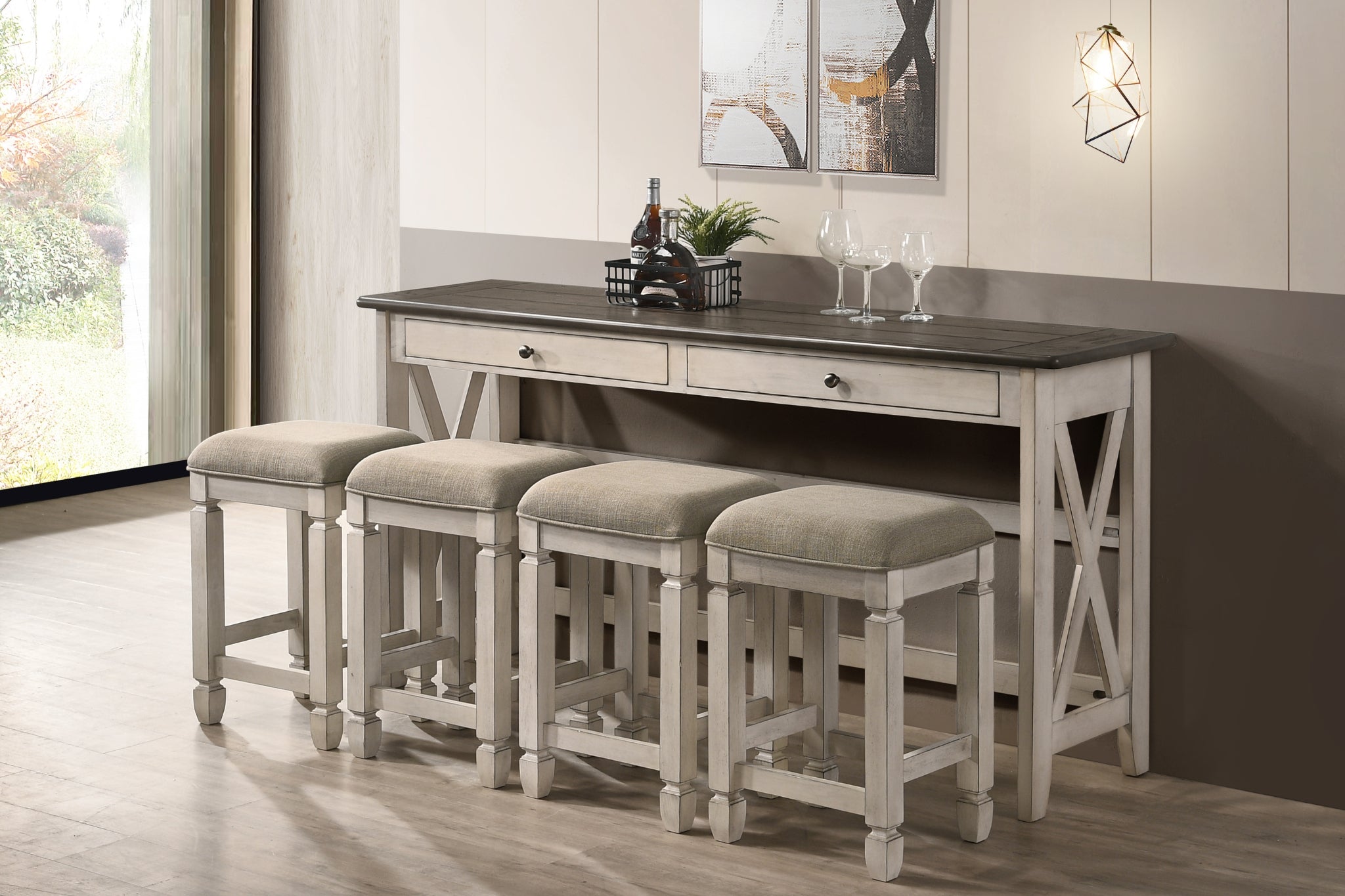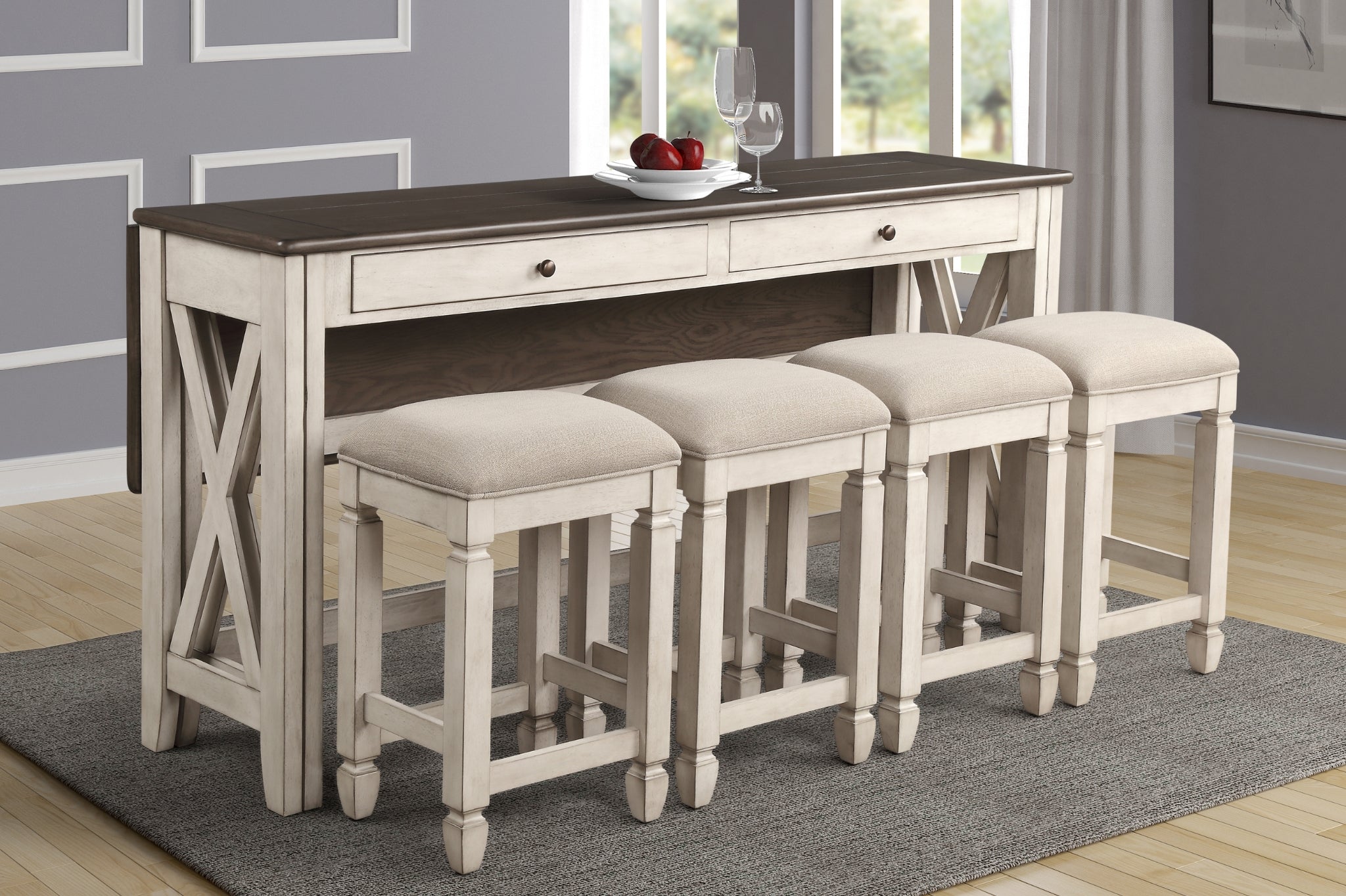 Transform your dining or living area with our Waverly Counter Dining set! This 5-piece set is perfect for hosting and fits perfectly in small spaces. You can easily add more seating for guests with a convenient drop-leaf option. Plus, the extra storage drawers make it perfect for storing dinnerware and utensils. Upgrade your dining experience now!